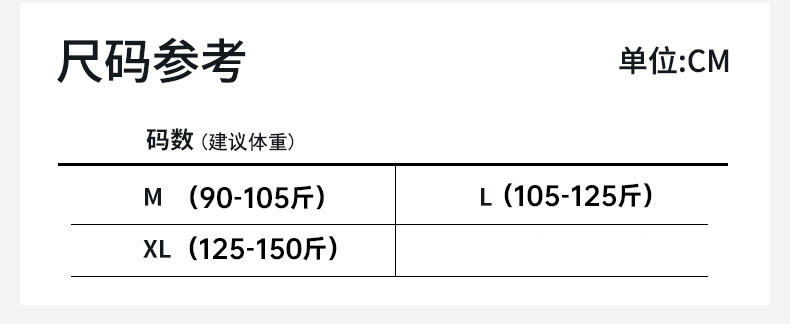 XL M L 尺码表