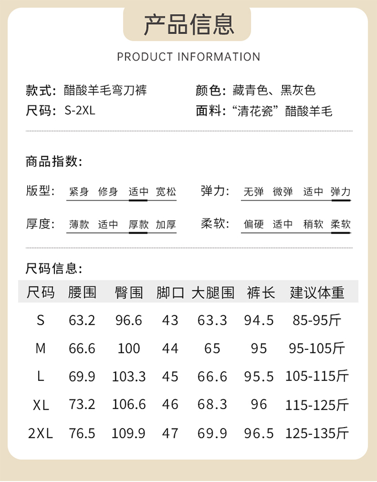 当前位置: 首页 > 服饰 > 女装 > 裤子 > 【大牌代工厂出品】和顺圣加厚绒醋酸羊毛呢弯刀裤3066A·黑灰色