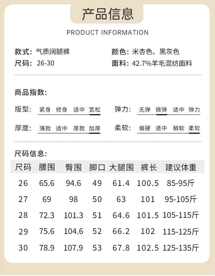 当前位置: 首页 > 服饰 > 女装 > 裤子 > 【大牌代工厂出品】和顺圣高阶羊毛厚阔腿裤3087·黑灰色