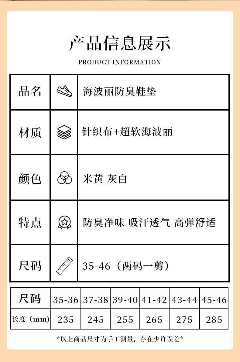7双纳盾海波丽吸汗防臭鞋垫5082·颜色随机