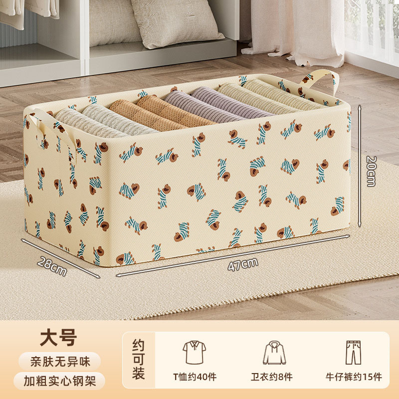 衣服收纳箱家用衣柜折叠带钢架储物筐神器大号*3个·米色带盖47*28*20cm