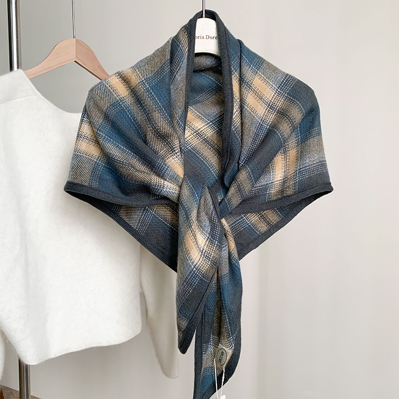 普春高级感时尚拼色格纹三角围巾WJ-202·蓝灰