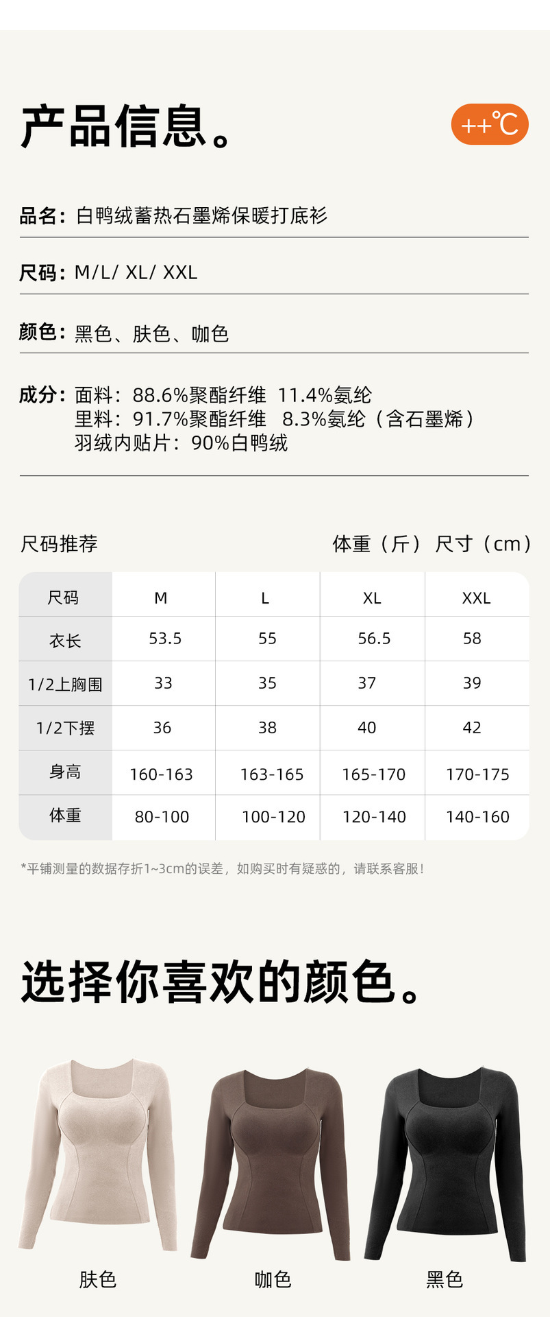 当前位置: 首页 > 服饰 > 内衣 > 保暖内衣 > 【羽绒保暖内贴】赛蔻石墨烯蓄热胸垫一体打底衫8006长袖·咖色