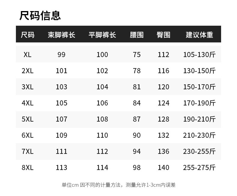 2XL 6XL 3XL 7XL XL 8XL 4XL 5XL 尺码表