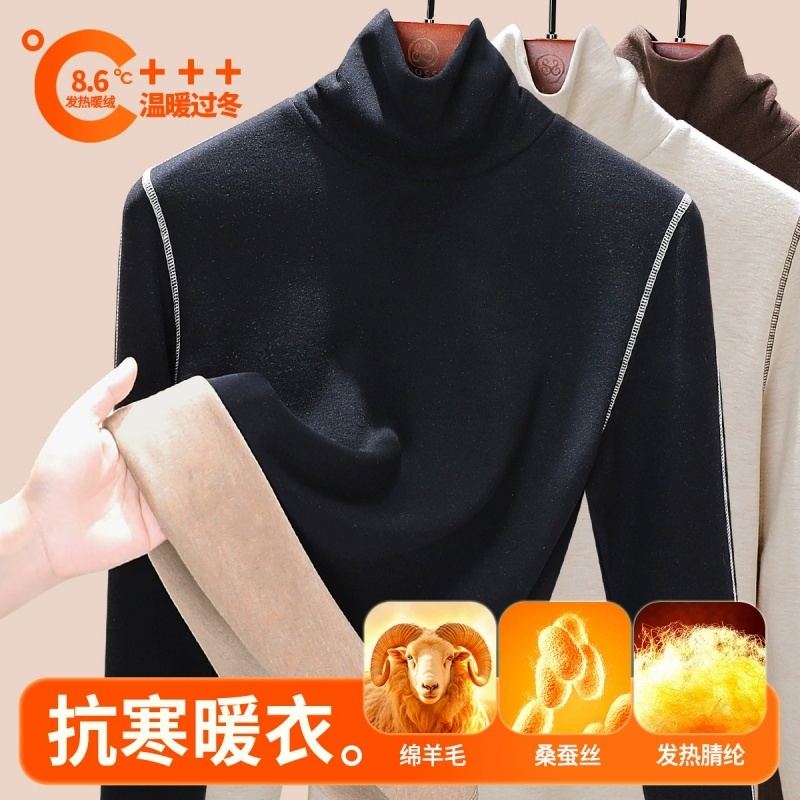【蚕丝羊毛】修娴暖绒时尚明线高领T恤M987M988·黑色
