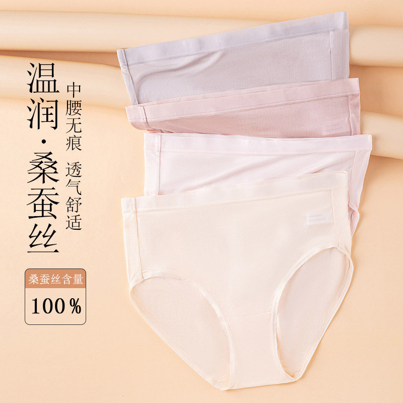 4条装100桑蚕丝纯真丝中高腰轻薄健康内裤313#·4色混装