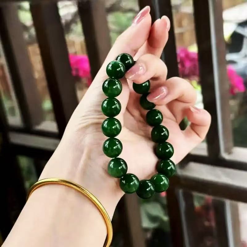 【观看30分钟188元换购】和田玉碧玉菠菜绿12MM手串