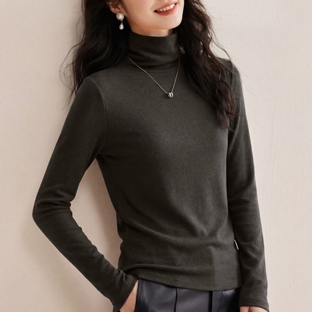【慕斯精纺羊毛】修娴轻薄高领T恤W18·暮岩灰