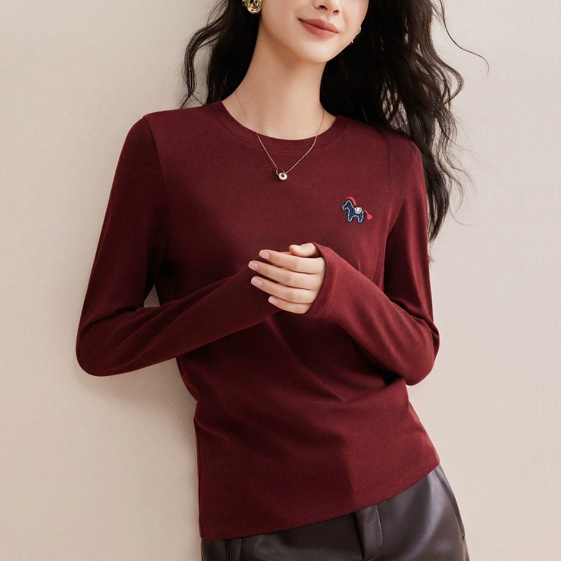 【羊绒般触感】修娴小马刺绣圆领T恤W19·安可拉红
