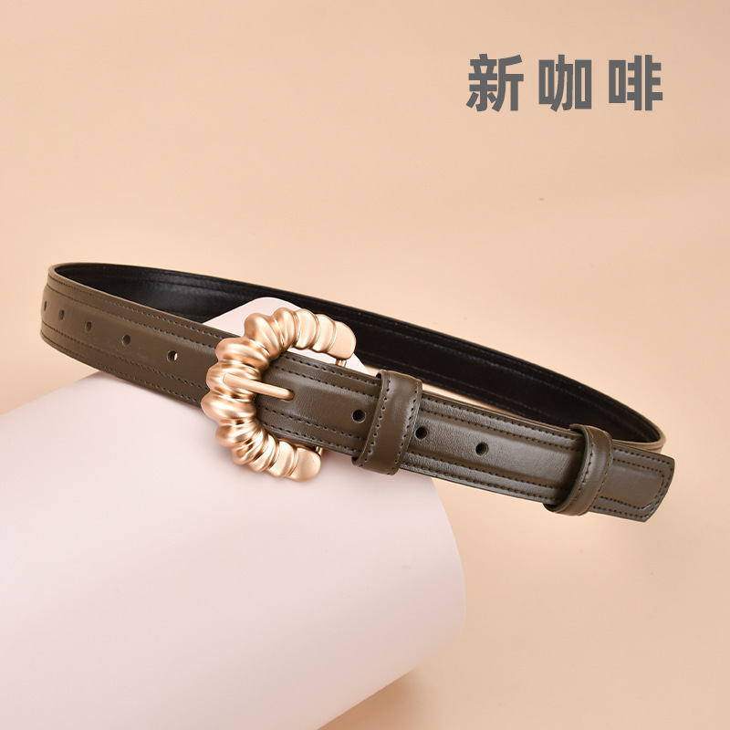 杜鹃鸟不规则字母扣真皮腰带30164·新咖啡