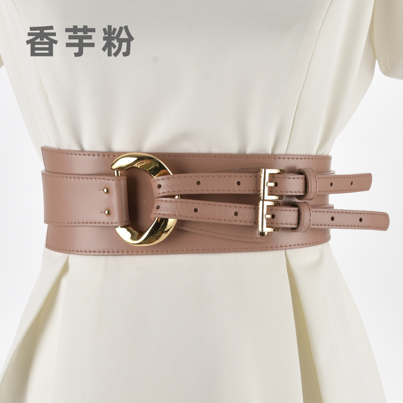 杜鹃鸟个性不规则设计腰封牛皮腰带80605·香芋粉