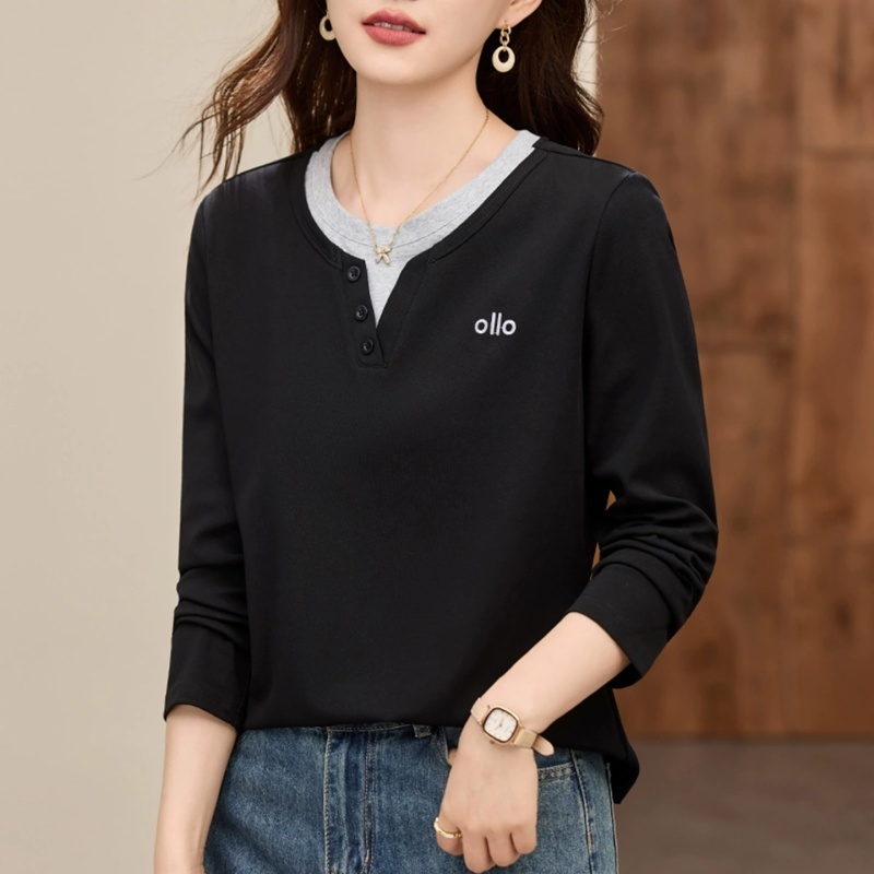 【高弹92棉】轩凌子高支撞色刺绣T恤S82530155·黑色