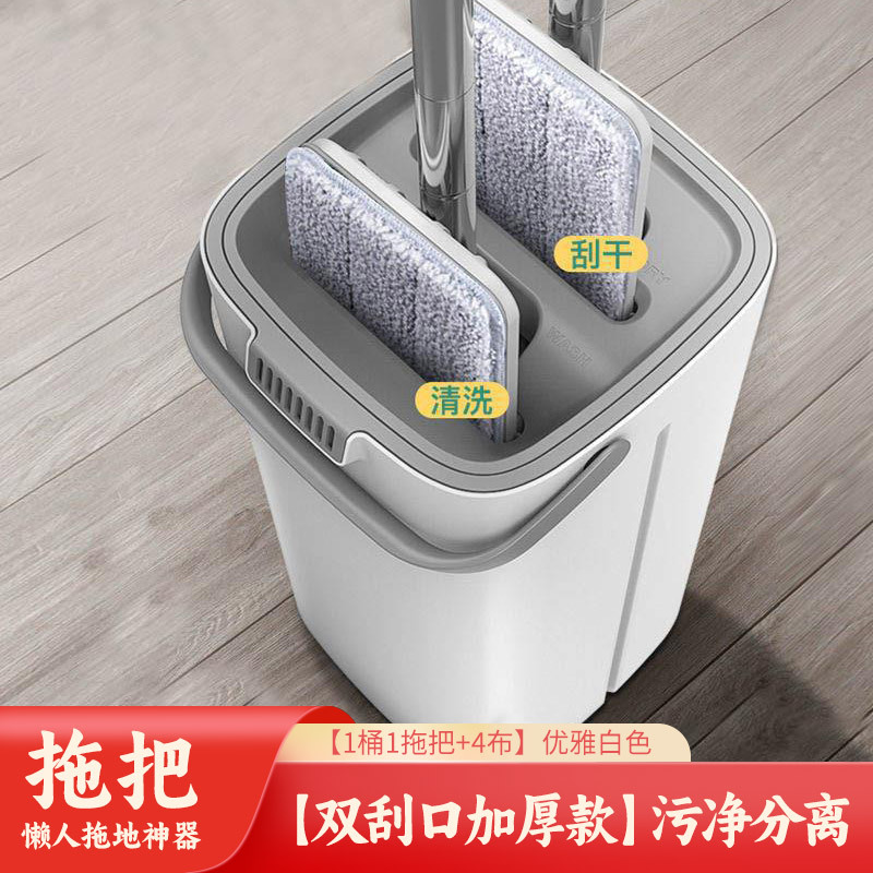 拖把懒人拖地神器【1桶1拖把+4布】优雅白色【双刮口加厚款】