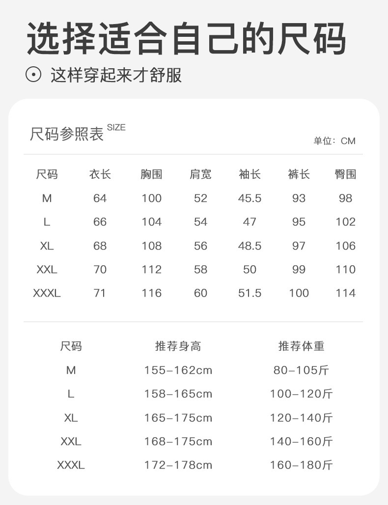 L建议100-120斤 M建议80-100斤 XL建议120-140斤 2XL建议140-160斤 尺码表