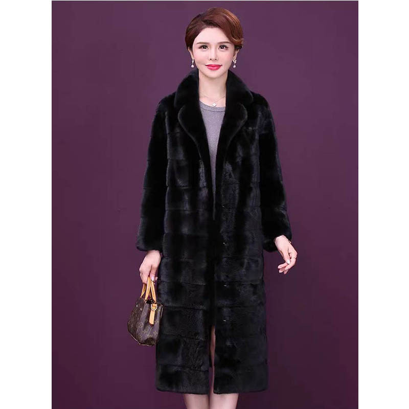 米彩微姿 天鹅绒整貂大衣水貂皮草长款本黑时尚裘皮皮草大衣·宝嘉美本黑色