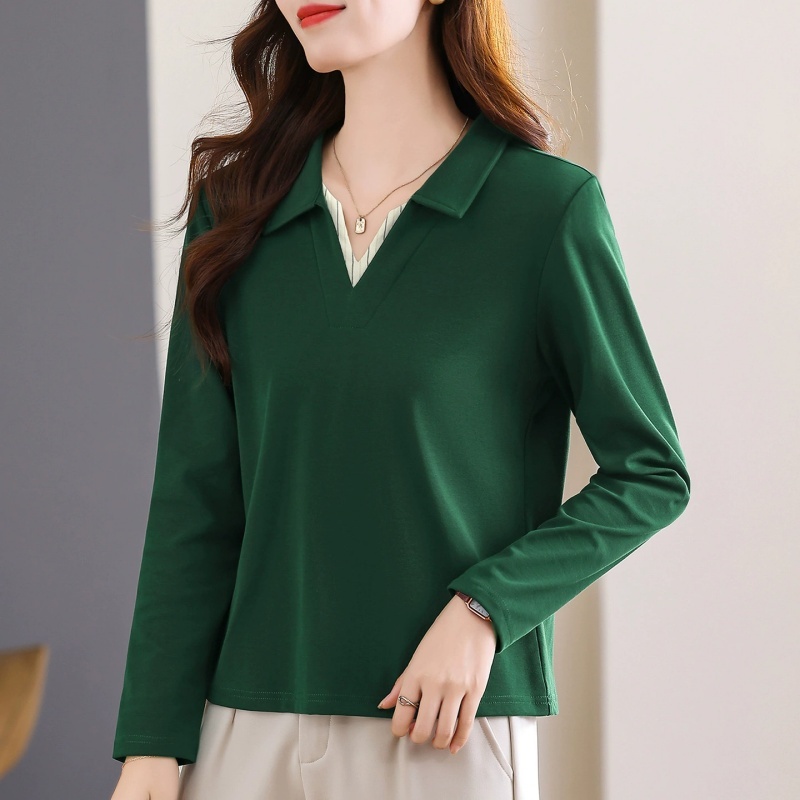 【92精梳棉】轩凌子翻领拼接T恤S82530146·森林绿