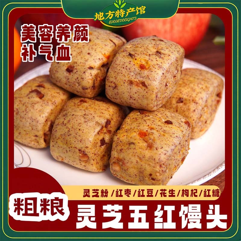 灵芝五红馒头 500g*3袋(60个)早餐主食 面点红枣 健康速食代餐包点