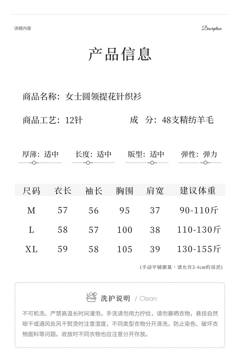 当前位置: 首页 > 服饰 > 女装 > 上衣 > 【爆款特价】精纺羊毛复古提花坑条显瘦百搭毛衣·深咖色