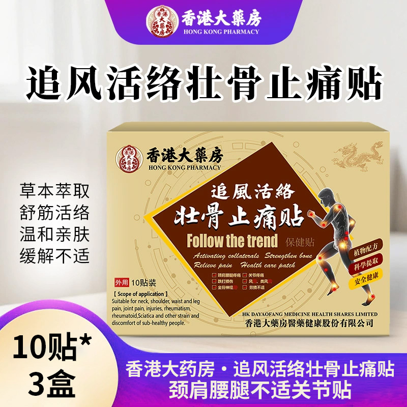 香港大药房·追风活络壮骨止 痛贴10贴*3盒颈肩腰腿不适关节贴