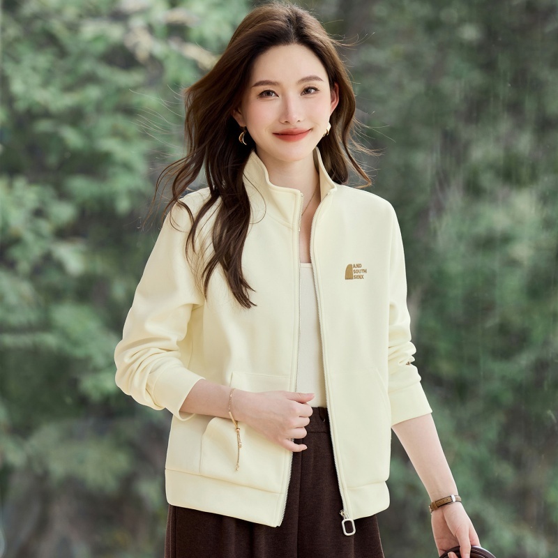 轩凌子拉链立领休闲外套XS82610038·栀子白