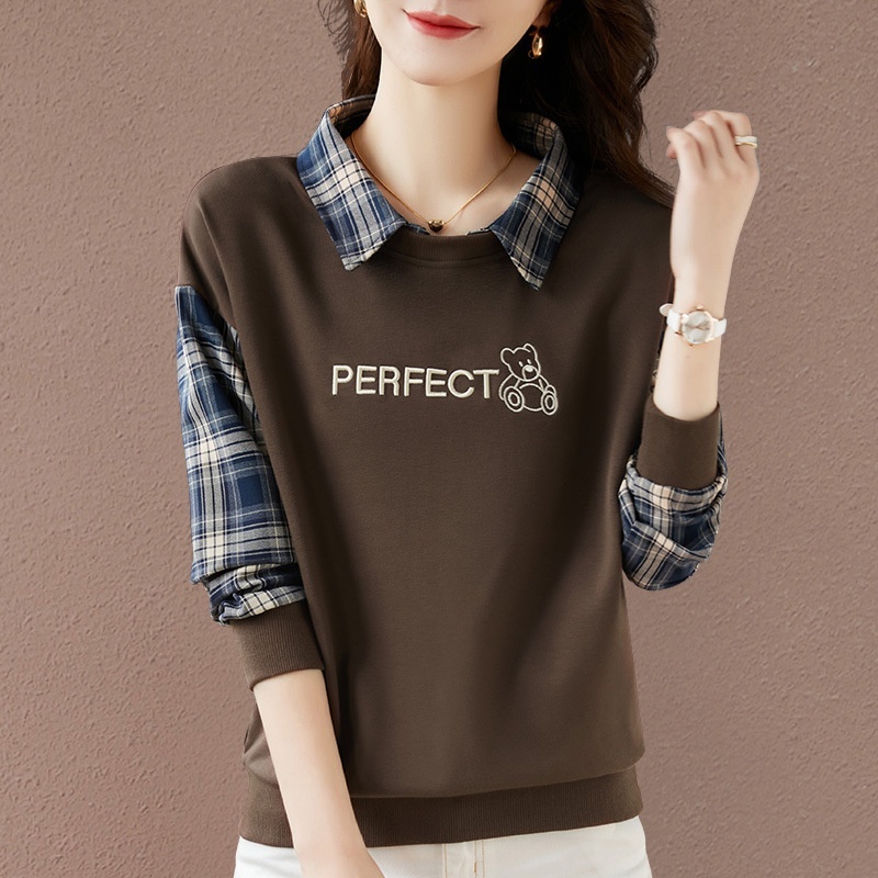 当前位置: 首页 > 服饰 > 女装 > 上衣 > 轩凌子格子拼接休闲卫衣S82310033·咖色