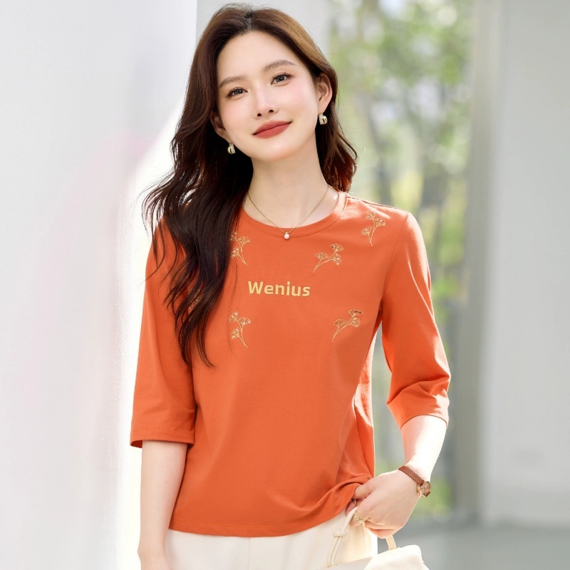【93精梳棉】轩凌子刺绣中袖T恤S82620011·活力橙