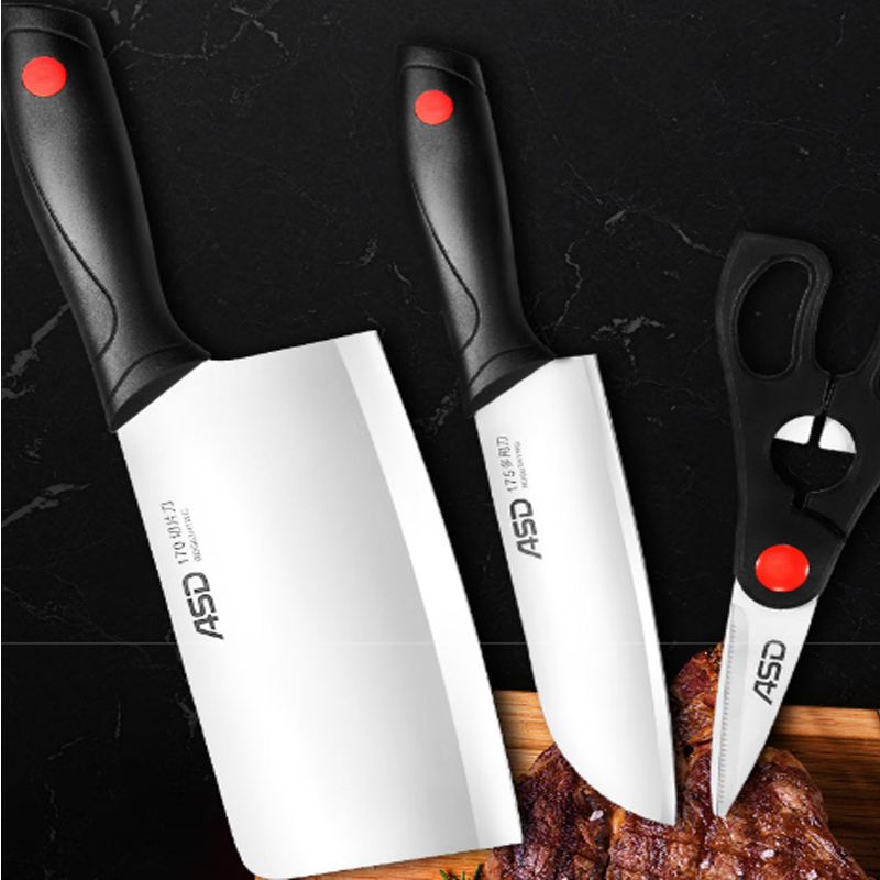 爱仕达红点系列不锈钢刀具件套切片刀\\熟食刀\\剪刀3件套·黑色