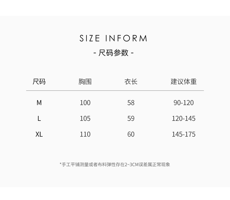 XL M L 尺码表
