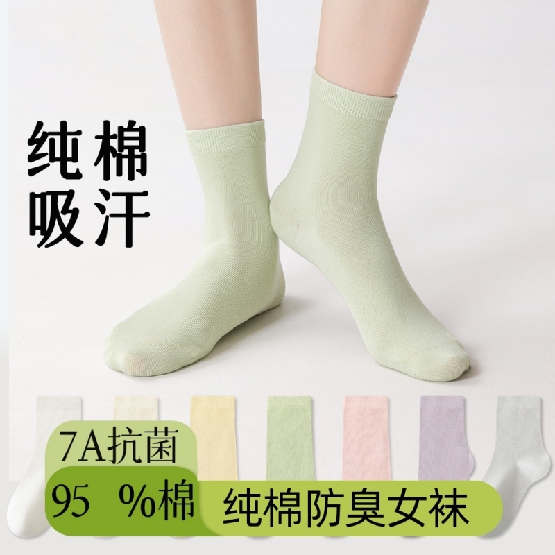 【95新疆棉】7双棉悟女士40支春夏7A抗起球中筒袜8898·颜色随机