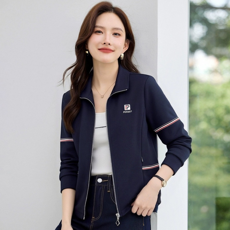 轩凌子撞色织带拉链外套XS92613016·宝蓝色