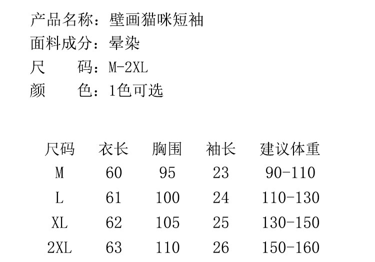 新款超细纤维晕染印花宽松时尚圆领短袖·壁画上的猫