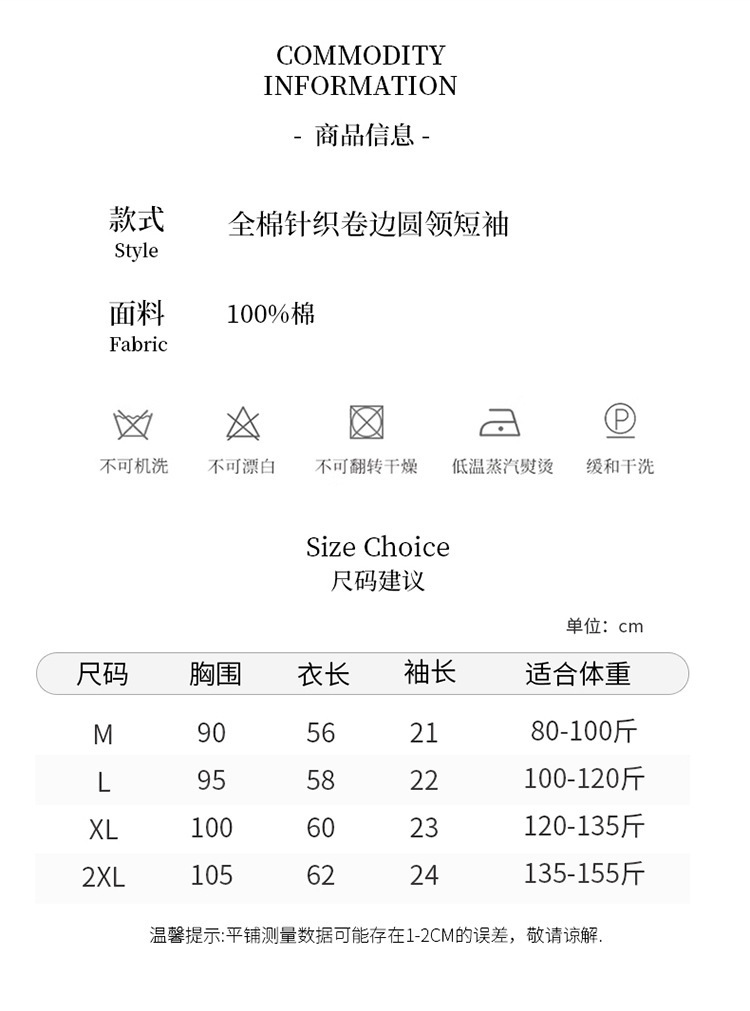 【100纯棉】新款时尚卷边宽松五分袖显瘦针织短袖·紫色