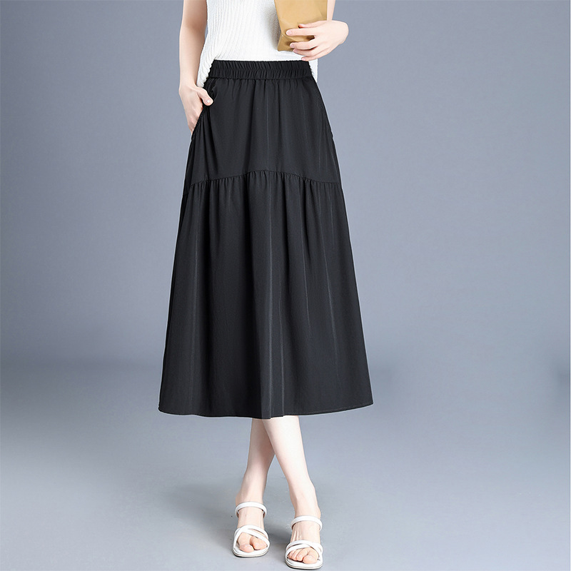 梦卓旋松紧腰口袋半身裙XH0560·黑色