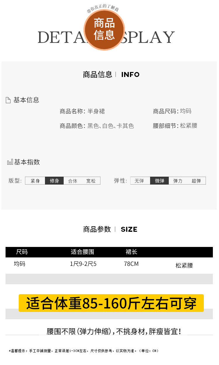当前位置: 首页 > 服饰 > 女装 > 裙子 > 梦卓旋松紧腰口袋半身裙XH0560·黑色