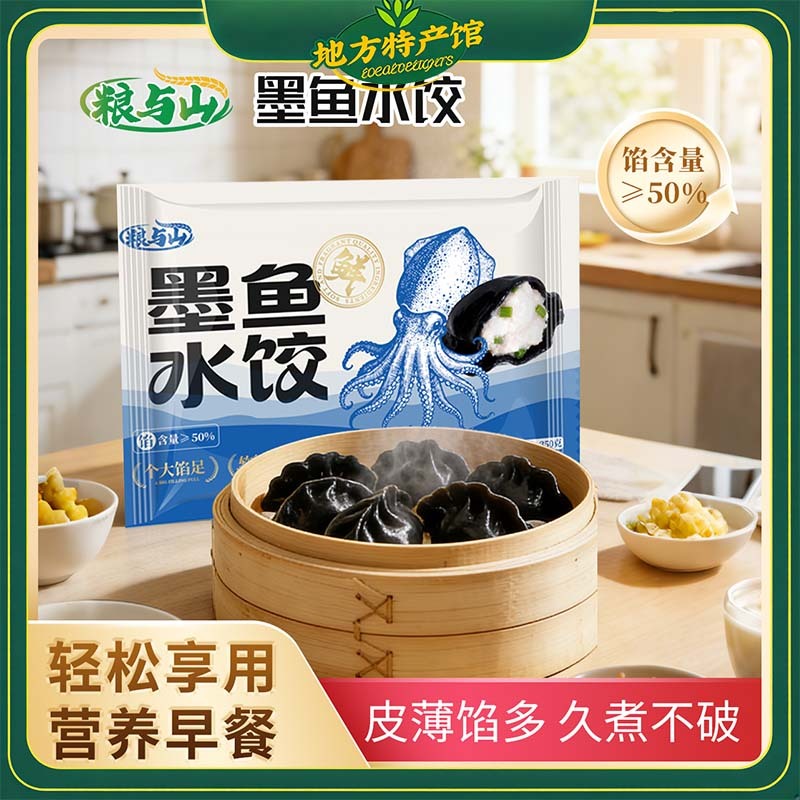 【顺丰/京东速运】墨鱼水饺 350g*3袋 新鲜皮薄馅大海鲜饺子