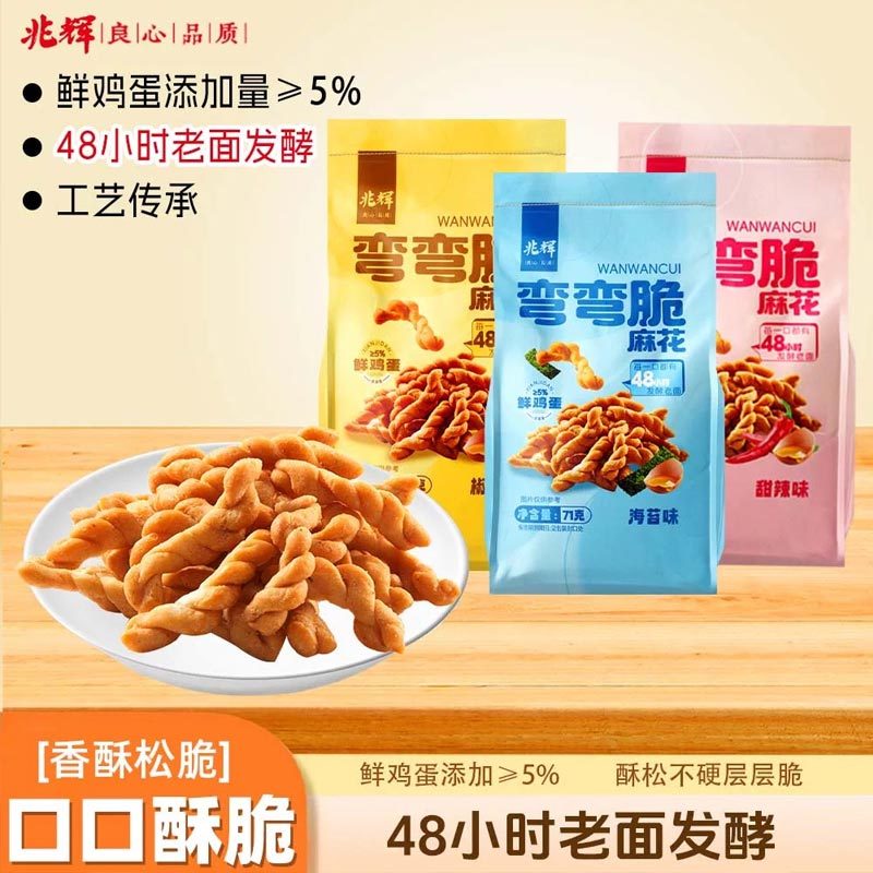 兆辉-弯弯脆麻花71g/袋*30包(海苔味+甜辣味+椒盐味各10袋)