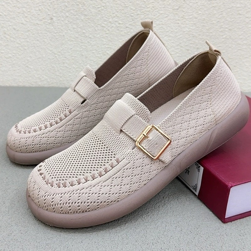 京昇女轻便飞织网面乐福鞋C-987·米色