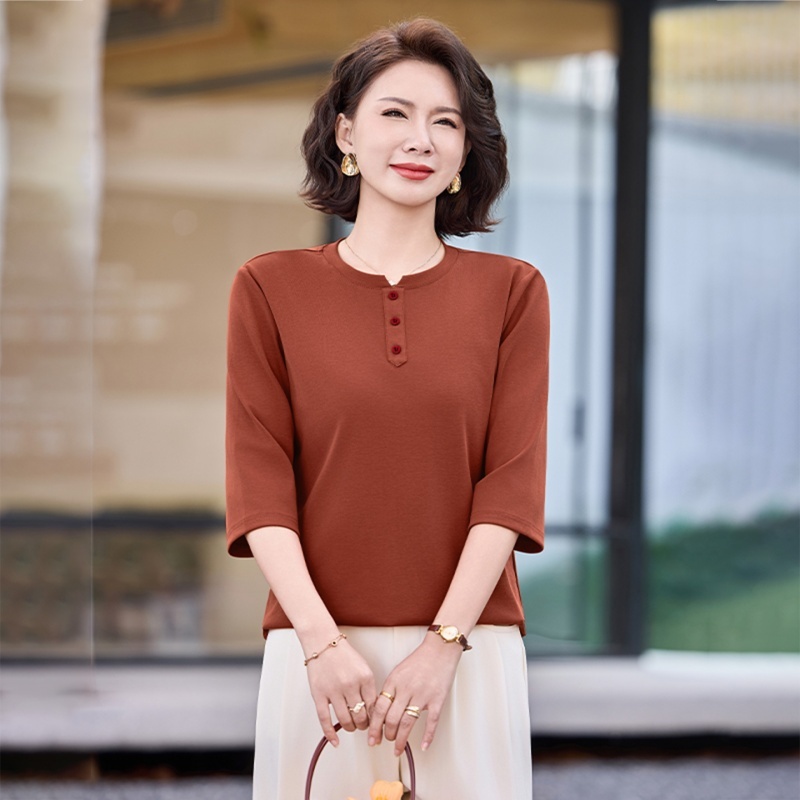 【92精梳棉】轩凌子简约修身中袖T恤S82610015·绣红色