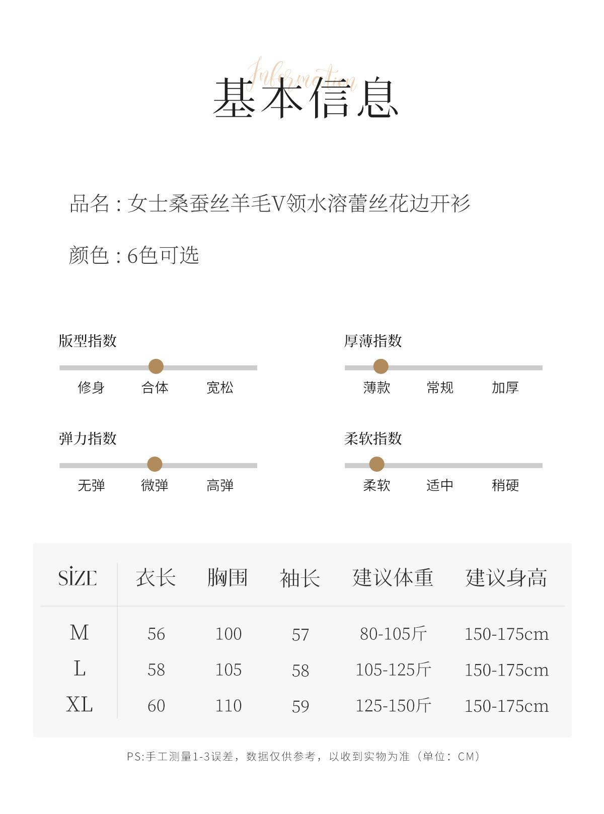 当前位置: 首页 > 服饰 > 女装 > 针织衫 > 丁摩 桑蚕丝羊毛法式蕾丝拼接V领针织开衫女NS-6006-68·春辰绿