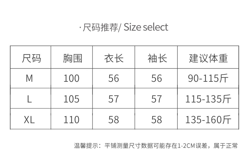 L M XL 尺码表