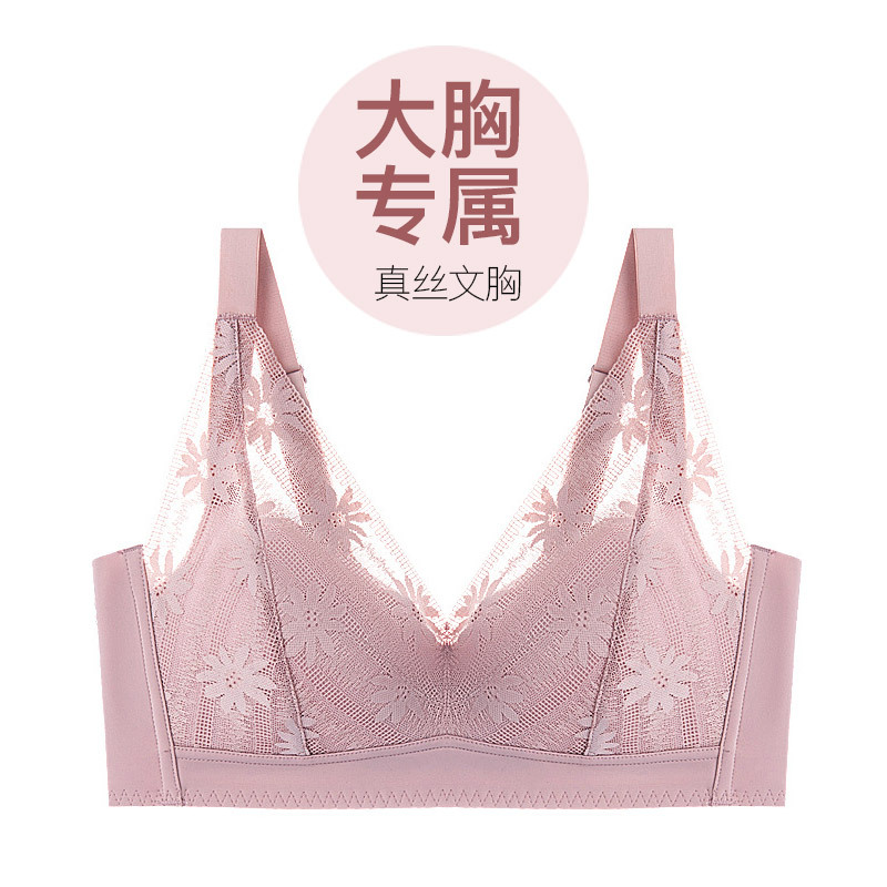 春夏真丝超薄款大胸显小文胸内衣S212#·粉紫色