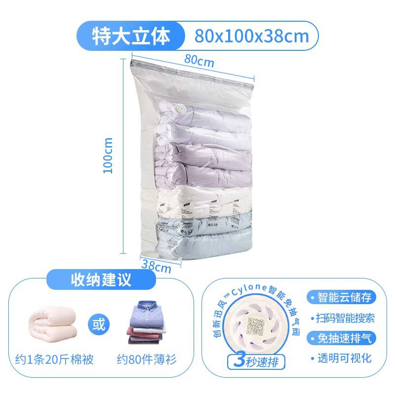 太力·真空压缩袋收纳袋免抽气真空袋80*100*38cm【特大立体】*2个