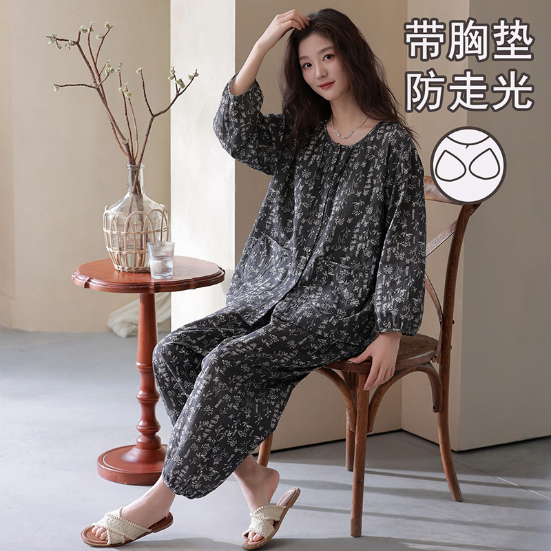 当前位置: 首页 > 服饰 > 内衣 > 睡衣/家居服 > 雀说 带胸垫睡衣女春夏云朵棉薄款七分袖九分裤家居服·L37121