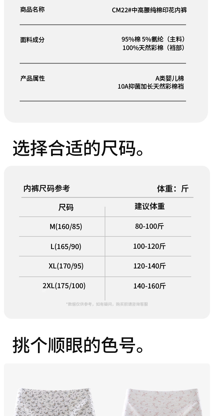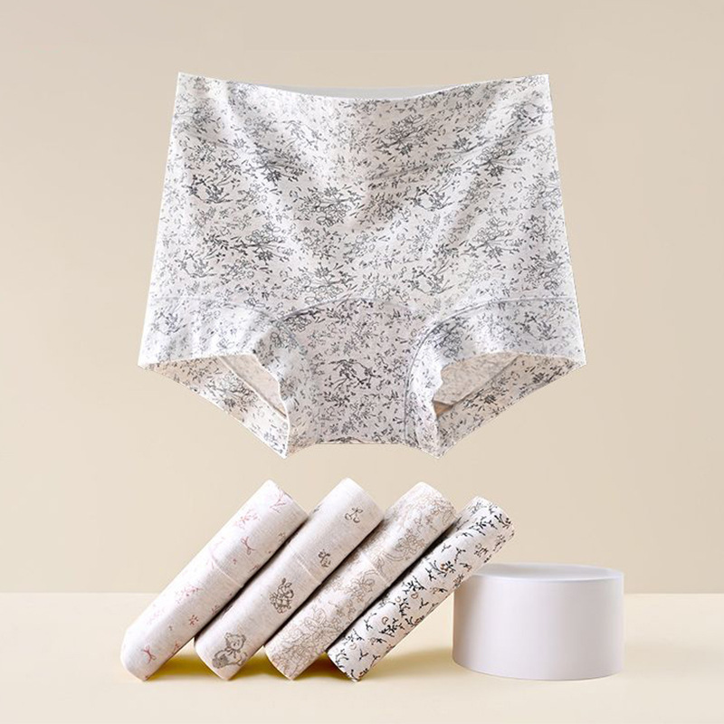 丁摩 【4条】碎花纯棉平角内裤女10A加长裆高腰CM-22·【4条】碎花纯棉平角内裤