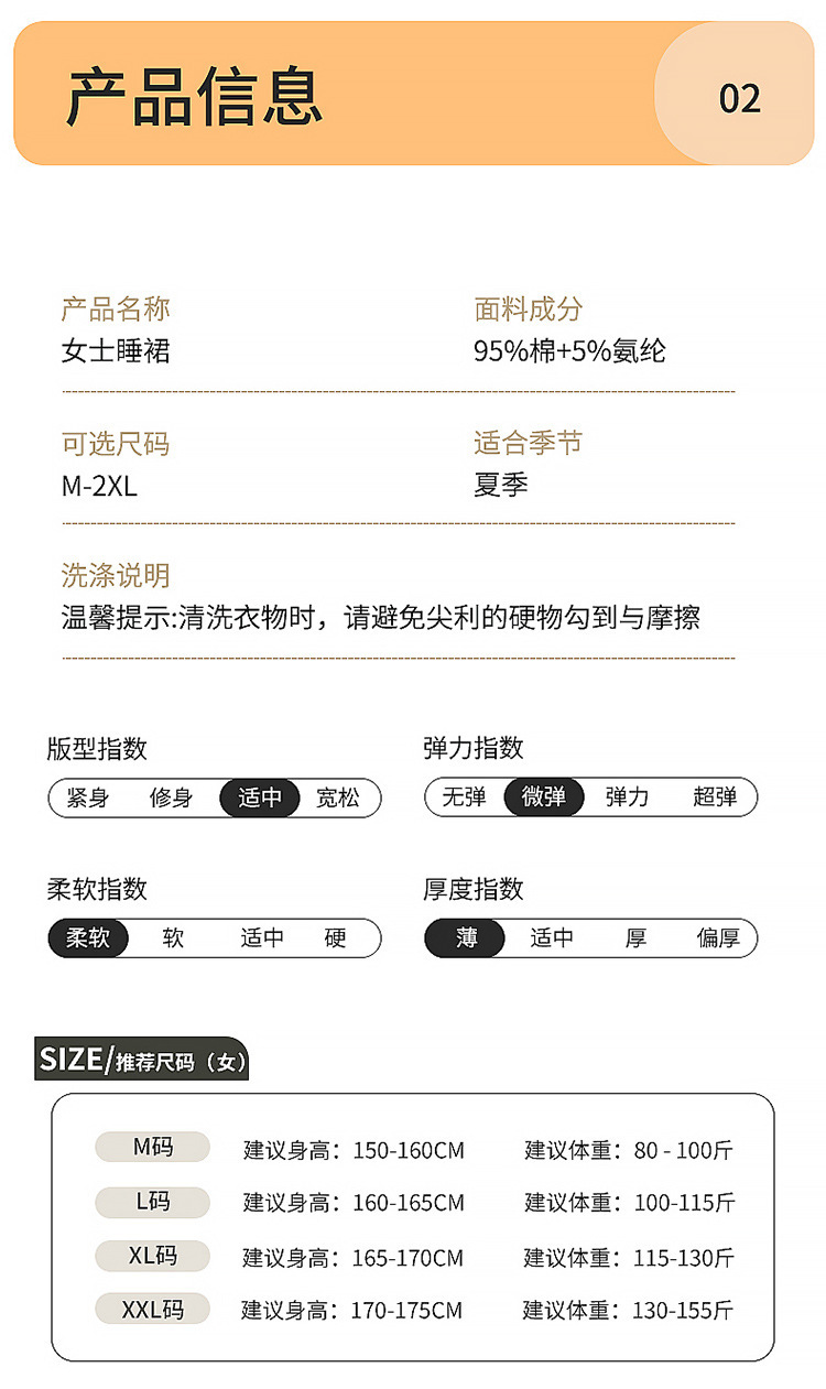 丁摩 带胸垫短袖睡裙女夏纯棉长款过膝睡衣·G8665