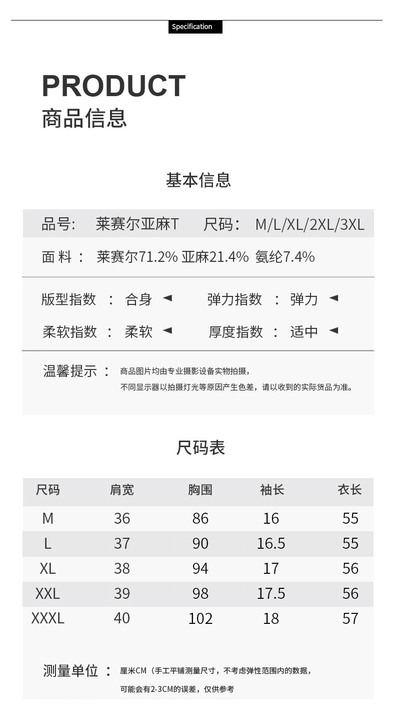 【天丝亚麻】修娴修身简约U领T恤M775·白色