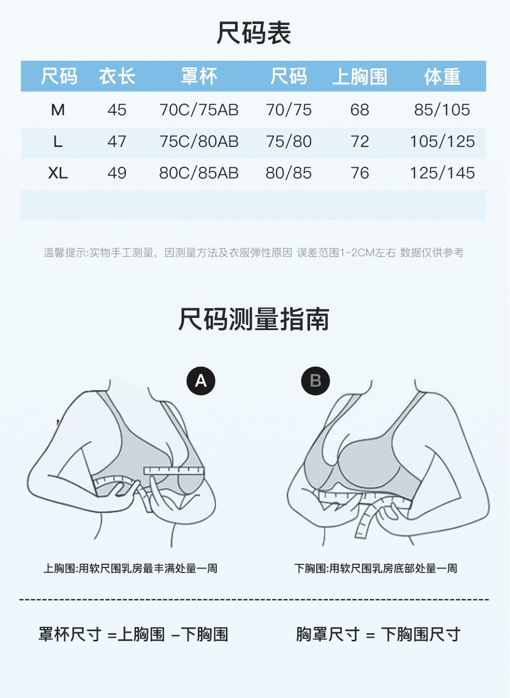 L码105-125斤 M码85-105斤 XL码 125-145斤 尺码表