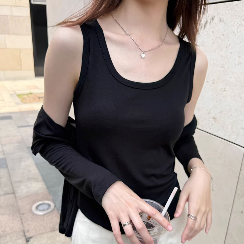 砾驾醋酸天丝羊毛无袖t恤莱赛尔内搭打底背心·DWFZ-黑色【2605款无胸垫背心