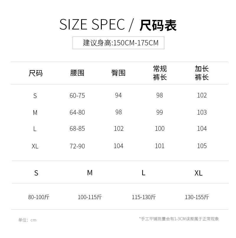 XL--130-155斤 L--115-130斤 S--80-100斤 M--100-115斤 尺码表
