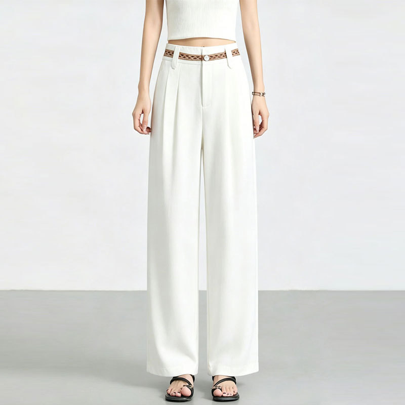 复古装饰高腰垂感休闲裤8838#·象牙白